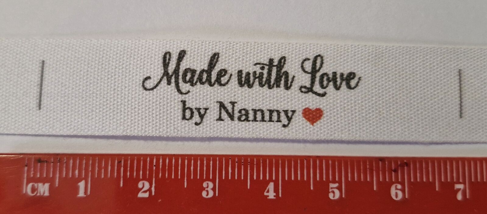***NEW***Tag, White, black printed wording Made with Love by Nanny