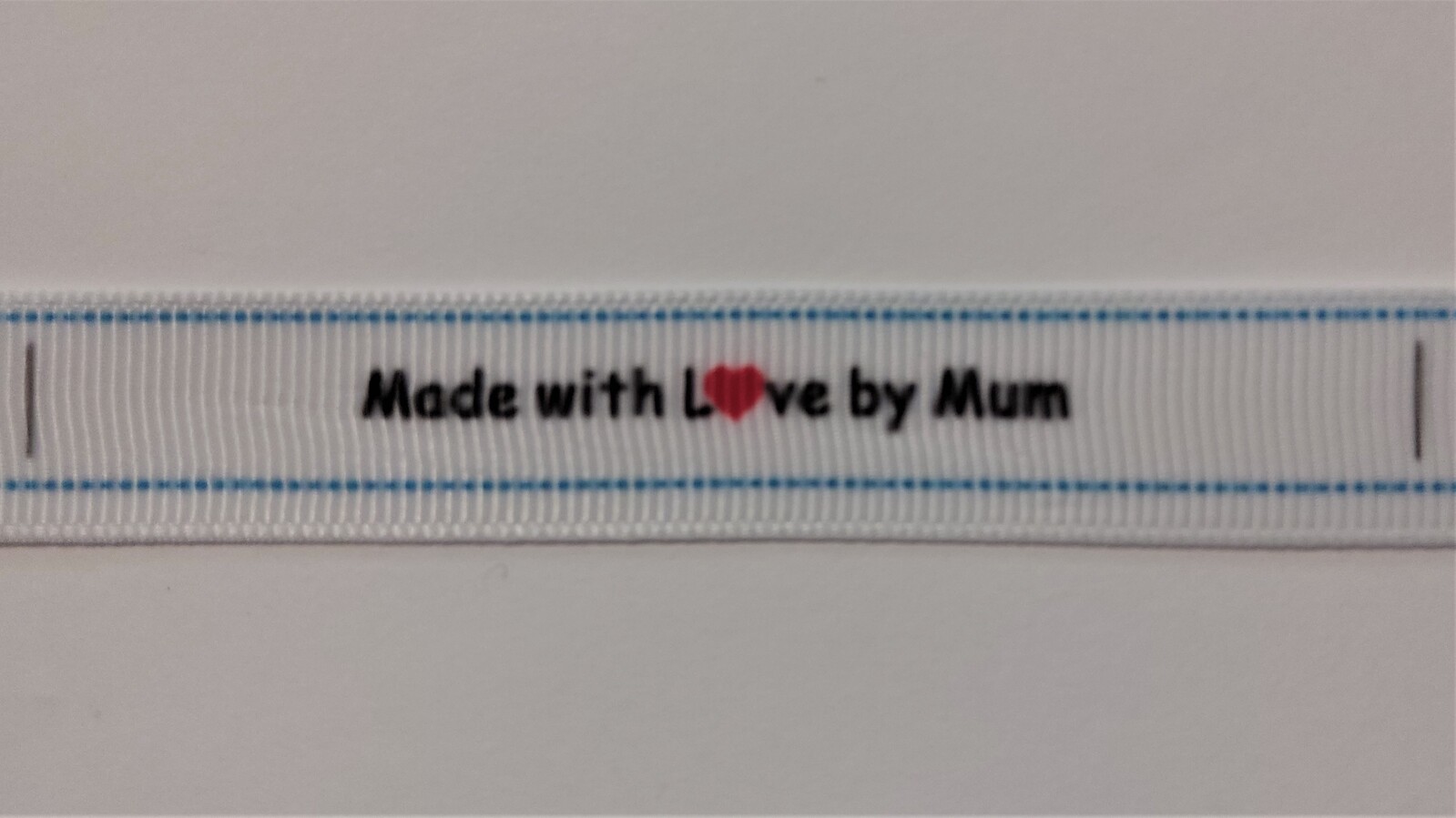 ***NEW***Tag, White, black printed wording Made with Love by Mum