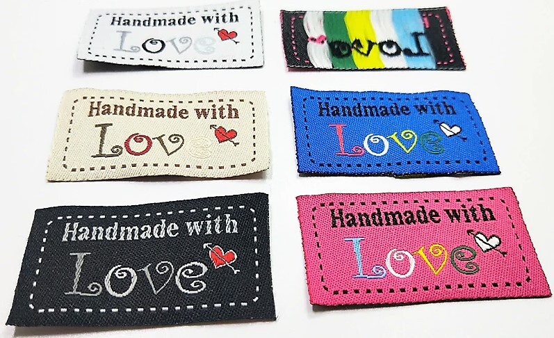 Tag, Handmade with Love, embroidered, 5cm x 2.5cm